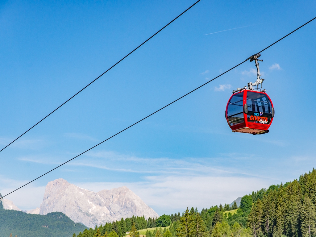 Die Aufstieganlage laufen auch im Sommer in Alleghe. Mit den wird es einfach die Höhe zu erreichen sein. Die erste Gondelbahn bringt bis zum Piani di Pezzè am 1450 m, und dann die zweite bringt bis zum 1900 m von Col dei Baldi. Von hier können Sie mit Ihre MTB oder zum Fuss weitermachen oder in einer schönen Berhütte für etwas zu trinken oder essen halten.